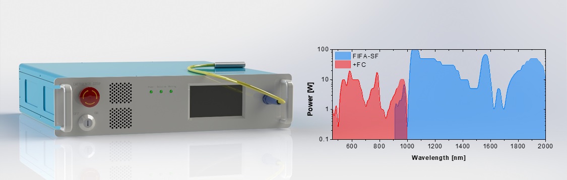 光纤激光宽带波长调谐,结合受激拉曼散射,光纤激光直接输出覆盖0.9至2微米。